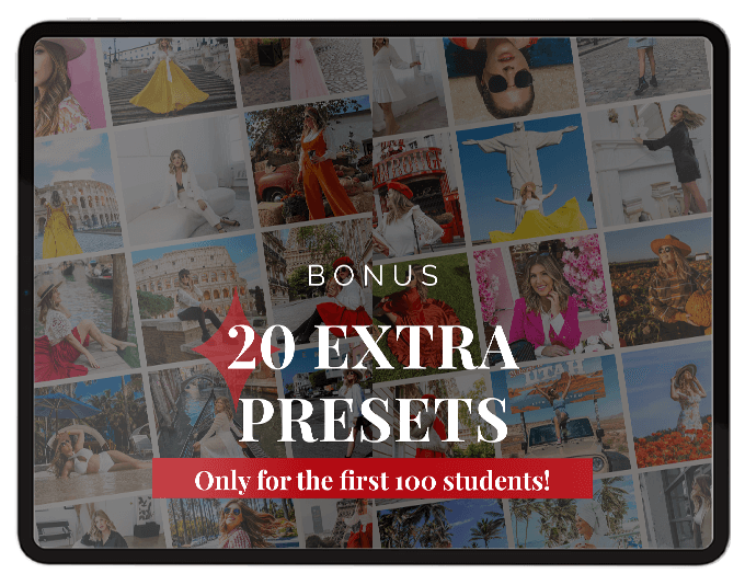 My first 100 students will get an additional 20 presets (so you need to hurry)